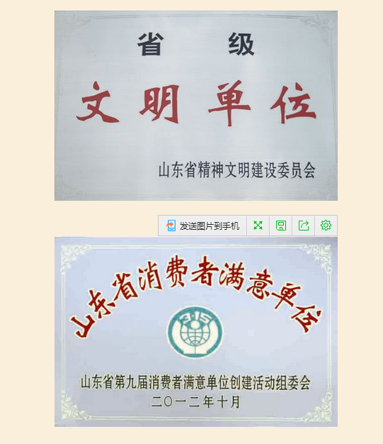 頒發單位:山東省第九屆消費者滿意單位創建活動組委會