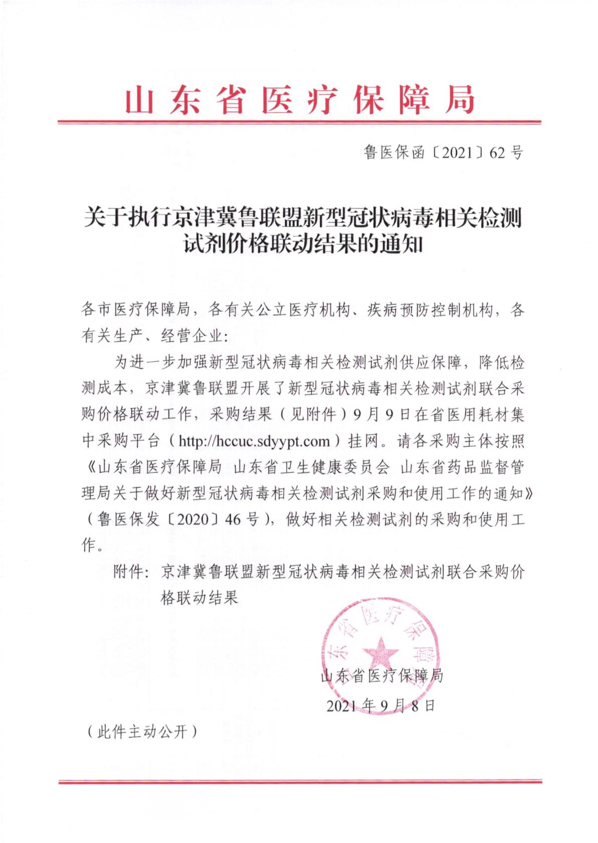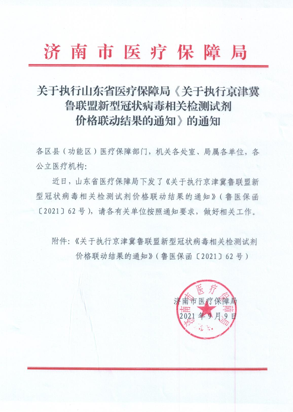 (濟南(nán)市(shì)醫(yī)保局發)關(guān)于執行山東省醫(yī)療保障局《關(guān)于執行京津冀魯聯盟新(xīn)型冠狀病毒相關(guān)檢測試劑價格聯動結果的通知》的通知
