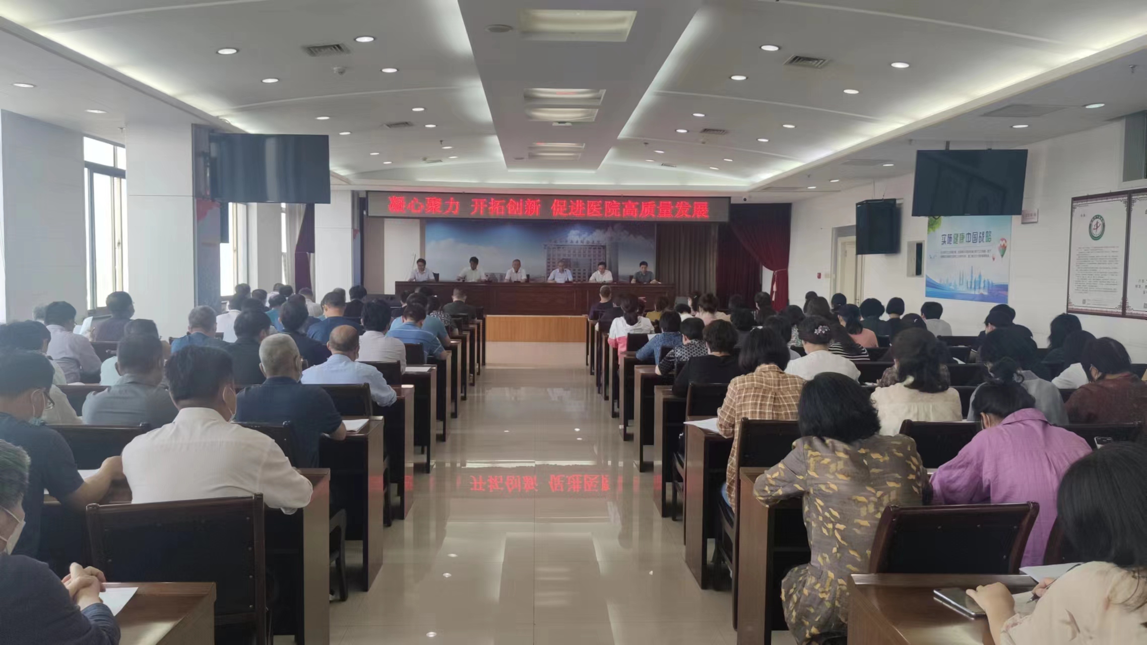 2022年5月(yuè)(yuè)27日,我院在病房(fáng)樓12樓會議(yì)室召開了(le)以“凝心聚力 開拓創新(xīn) 促進醫(yī)院高質量發展”為(wèi)主題的2022年工作(zuò)推進會。會議(yì)由院黨委委員(yuán)、工會主席任建民(mín)同志主持。
