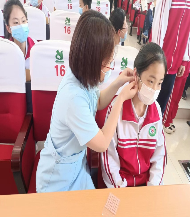 課後我院醫(yī)護志願者為(wèi)200餘名學生(shēng)監測視(shì)力并發放(fàng)宣傳彩頁,并為(wèi)多名視(shì)力低(dī)下(xià)的學生(shēng)進行現(xiàn)場(chǎng)推拿、耳穴壓豆等中醫(yī)藥适宜技術體(tǐ)驗。