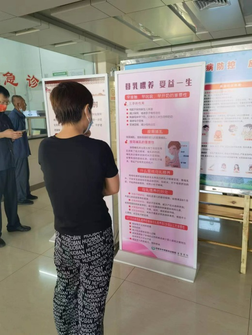 在門診大廳擺放(fàng)了(le)母乳喂養宣傳彩頁,吸引了(le)人(rén)們駐足觀看。