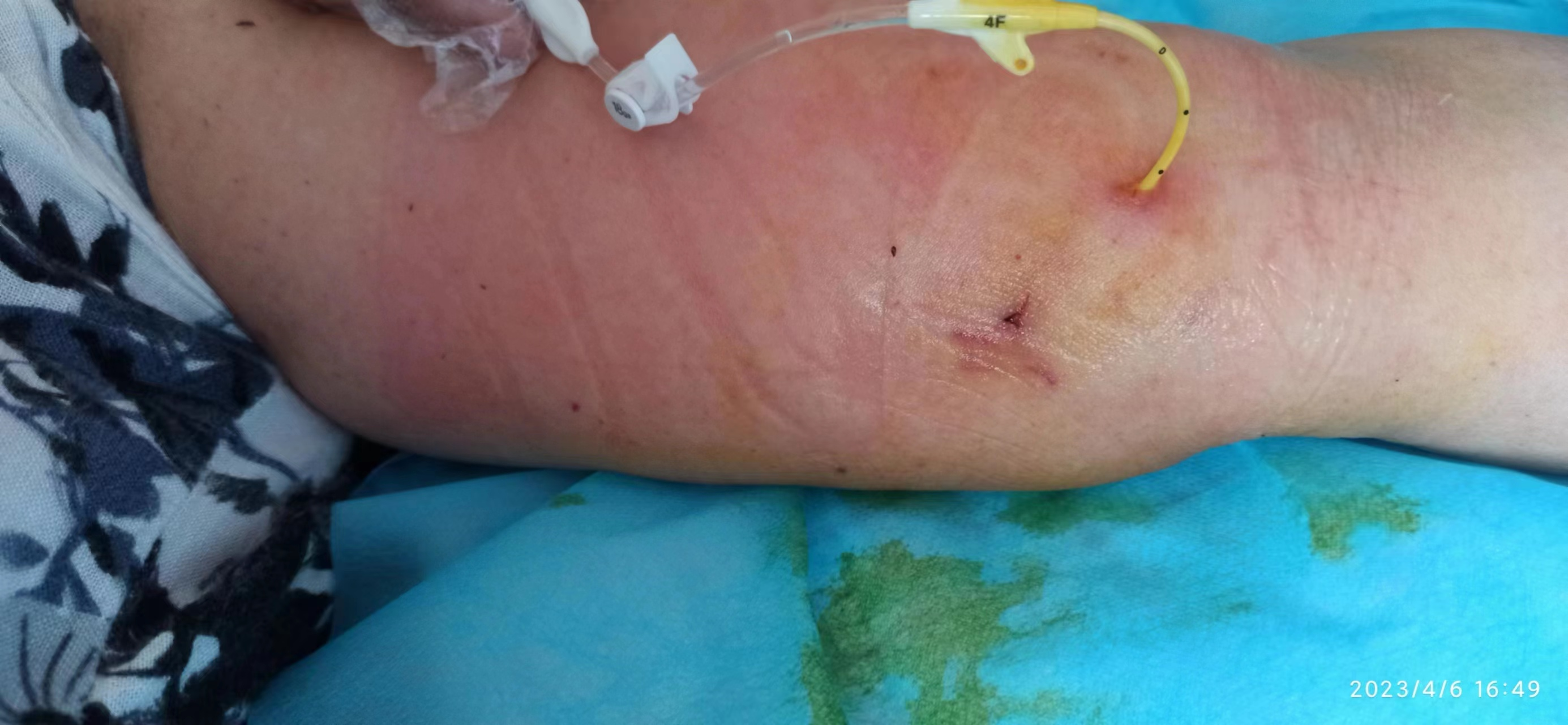 患者因卵巢惡性腫瘤在其他醫(yī)院先後PICC置管5次,治療期間(jiān)均因導管脫出而拔管,不僅影響了(le)治療,還導緻患者心情煩躁焦慮。患者入我院後,PICC專科護士王交莉護士長與患者及家屬積極溝通交流,并将相關(guān)事(shì)宜充分(fēn)告知後,于2023年3月(yuè)(yuè)30日給予患者隧道式PICC置管,過程順利,4月(yuè)(yuè)8日行PICC換藥,穿刺點和導管出口處愈合良好(hǎo)(hǎo),導管外露長度固定,患者及家屬情緒放(fàng)松,表示滿意。