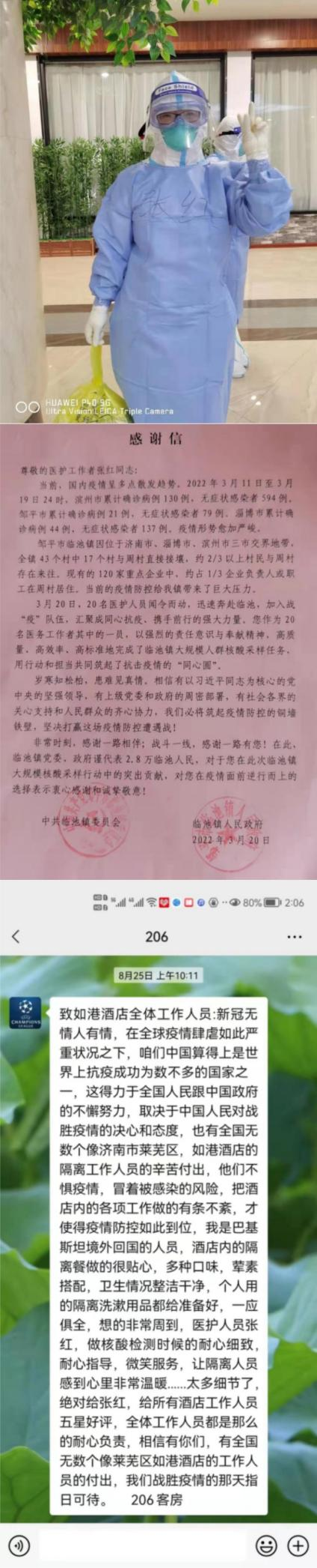 新(xīn)冠疫情期間(jiān),我始終發揮黨員(yuán)先鋒模範帶頭作(zuò)用,不畏艱險,沖在疫情一(yī)線。2020年8月(yuè)(yuè),進駐如(rú)港國際酒店(diàn)集中隔離點承擔歸國華僑保障任務(wù);2022年3月(yuè)(yuè),支援濱州核酸采集,勇挑重擔,無畏堅守在防疫第一(yī)線。同時(shí),在日常追陽溯陽、全員(yuán)核酸檢測、應急流調與疫苗接種的各項防疫工作(zuò)中,同樣堅守一(yī)線,用實際行動踐行黨員(yuán)的初心使命。